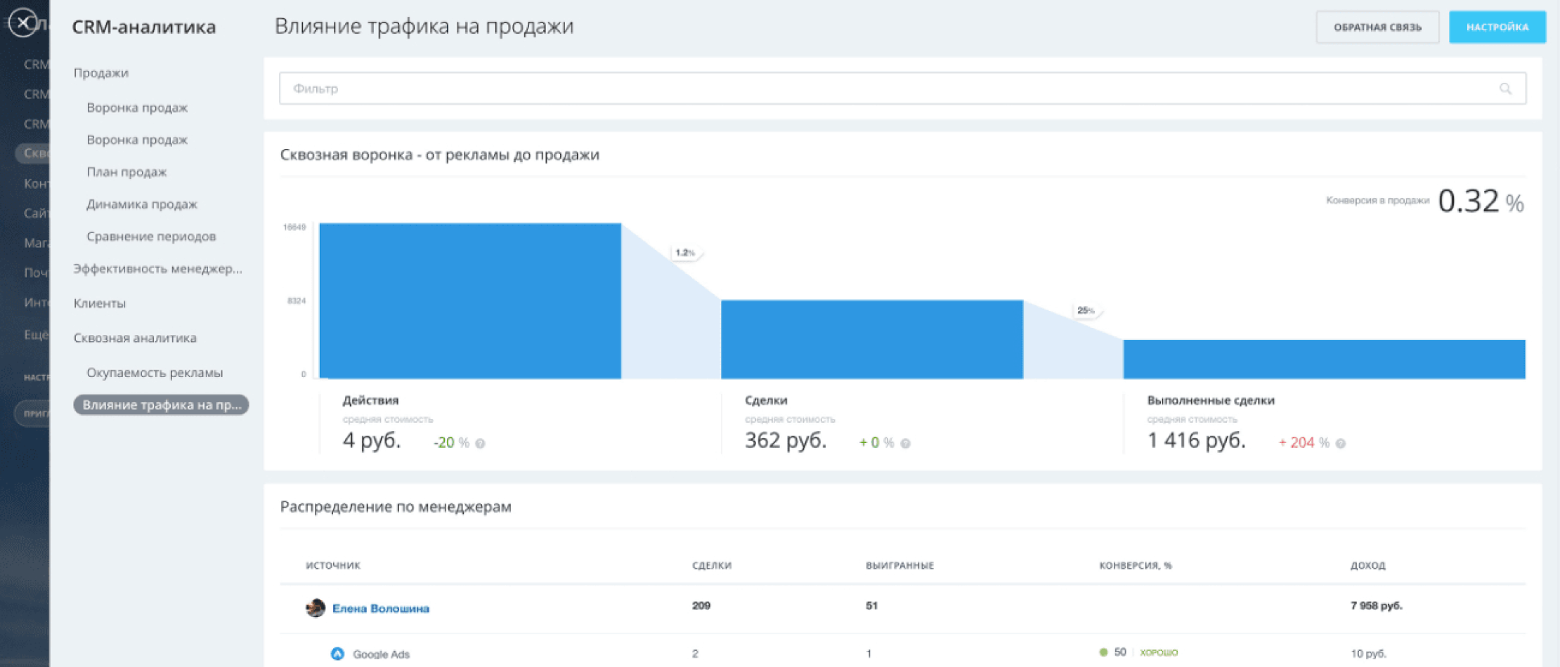 Вы узнаете, какой трафик менеджеры конвертируют в сделки лучше всего